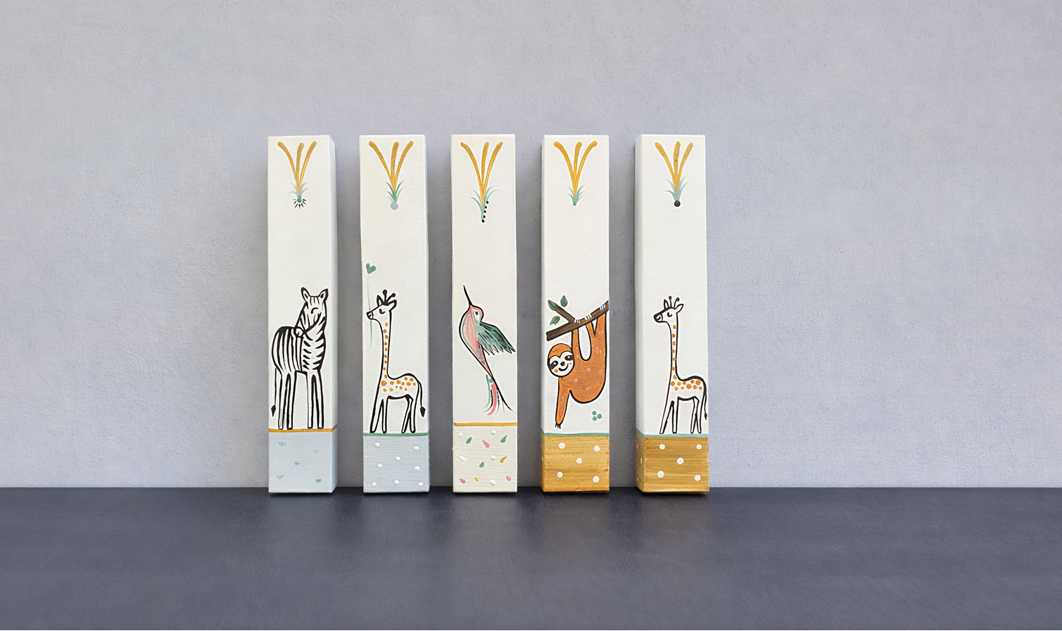כל פריט נוצר בעבודת יד מלאה, מציור במכחול, דרך בחירת הצבעים ועד כתיבה אישית בכתב יד.