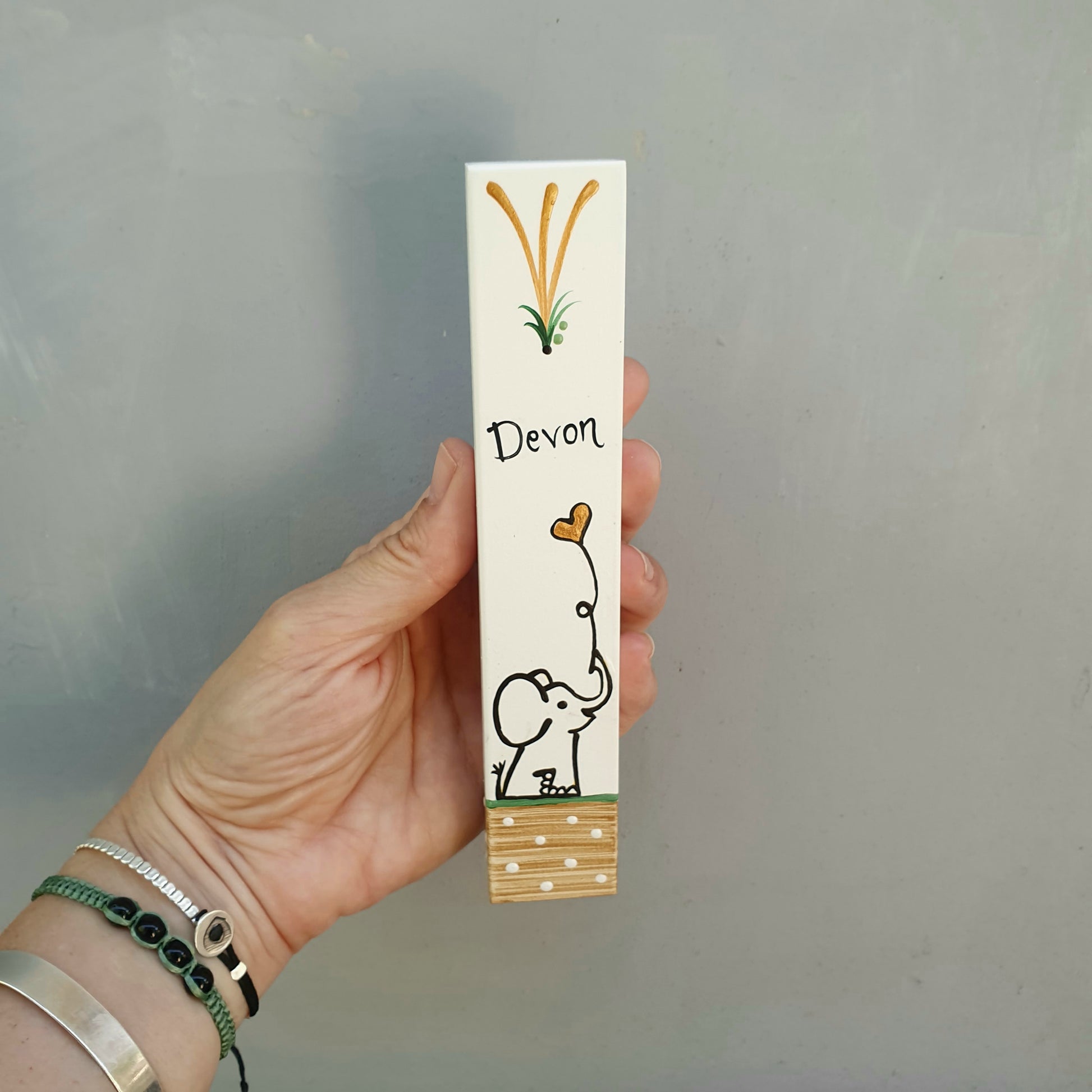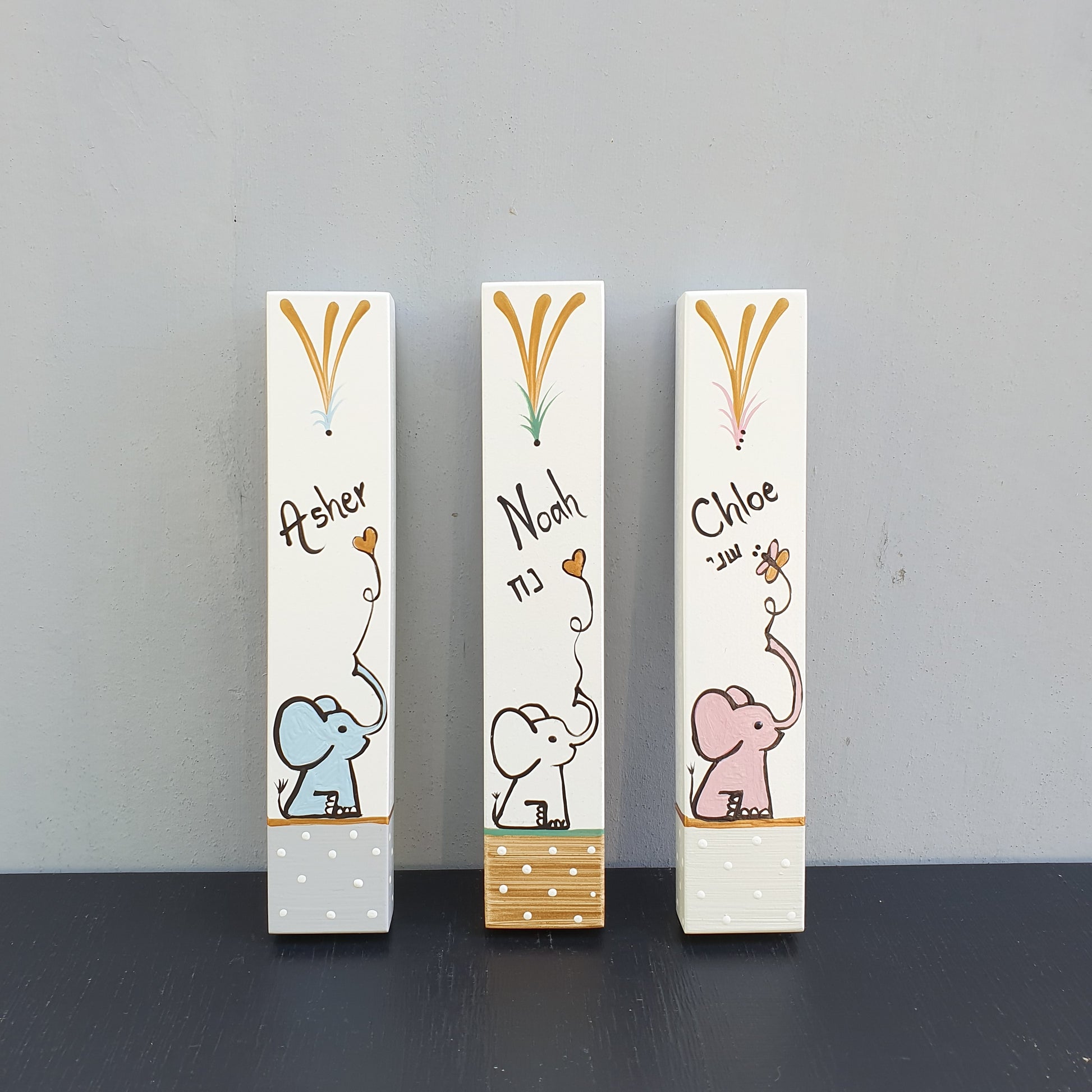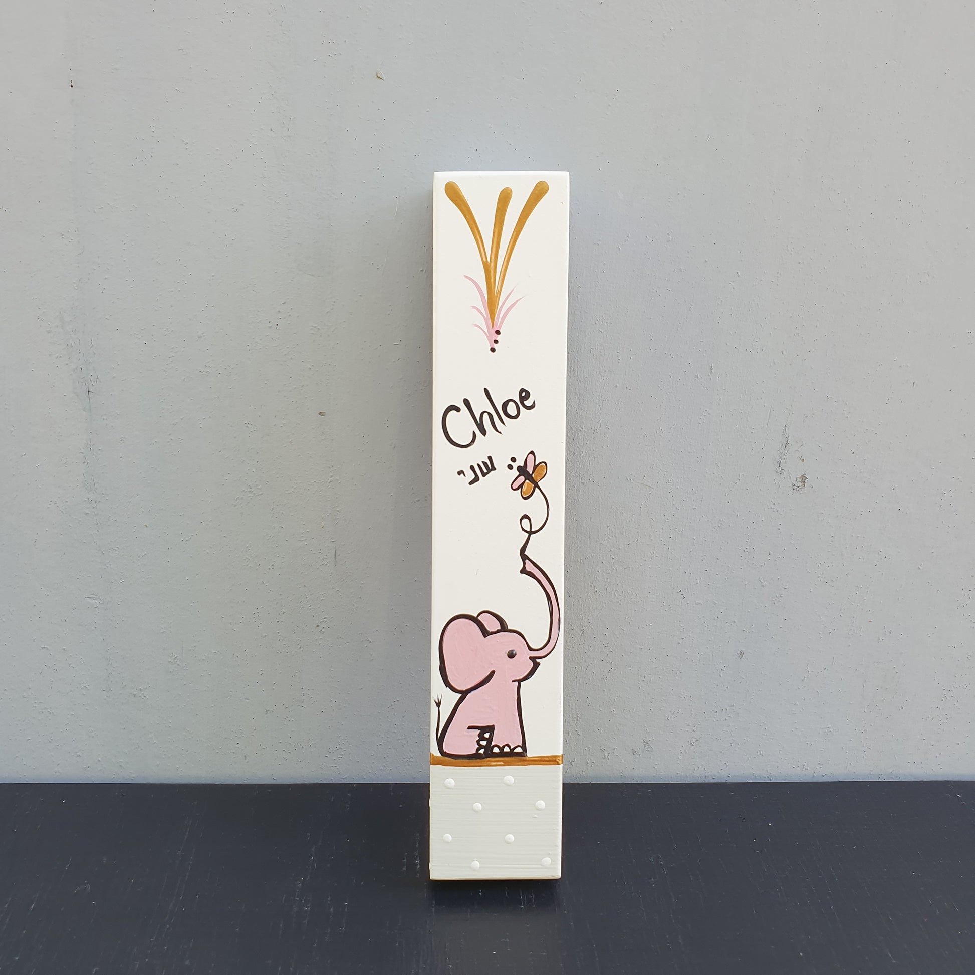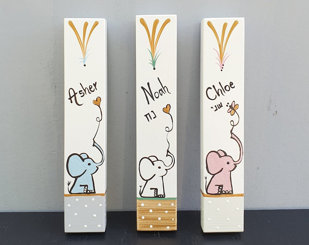 Astar | מזוזה לחדר ילדים עם ציור פיל וכיתוב אישי בעבודת יד