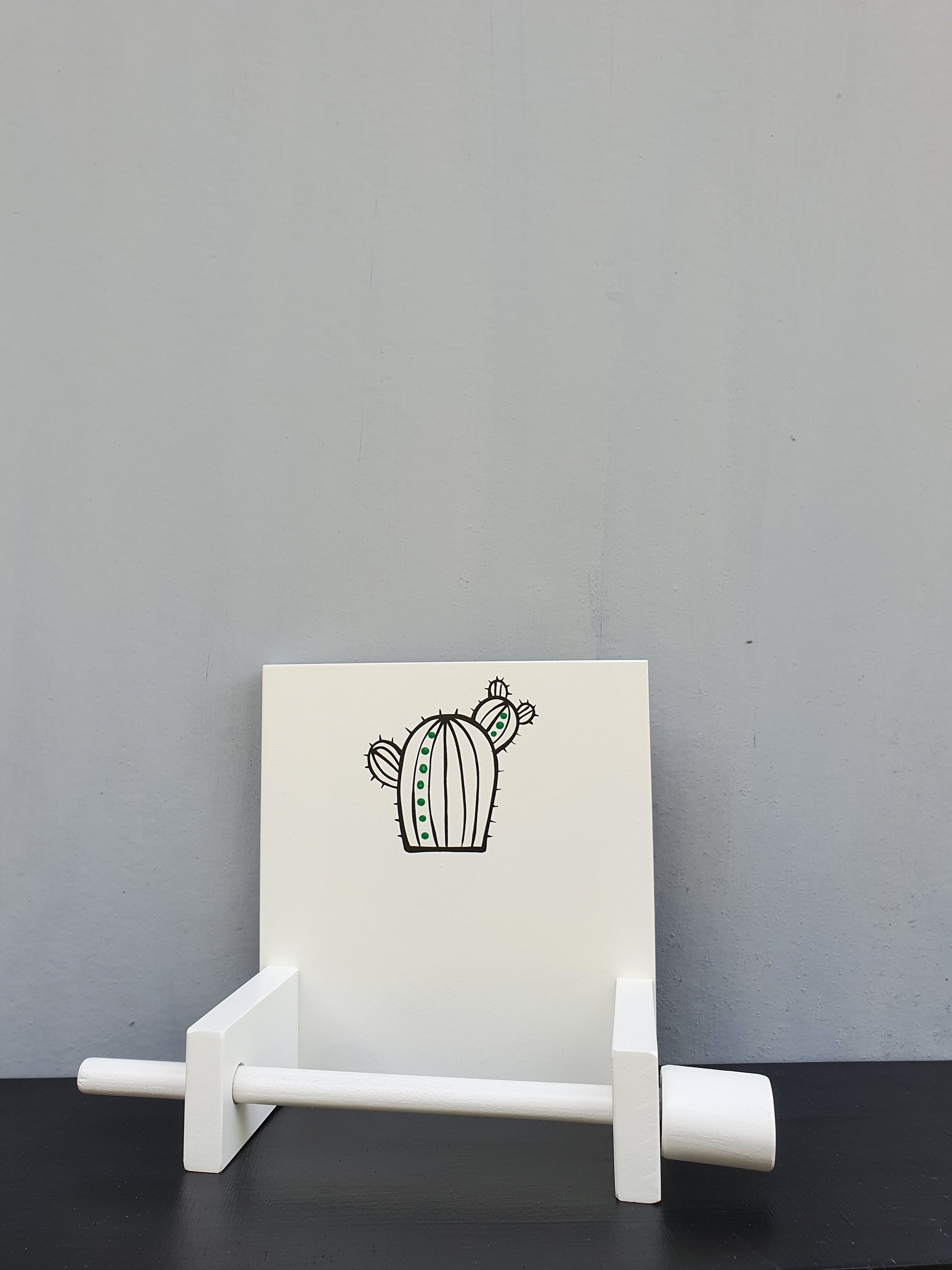 מתקן לנייר טואלט מעץ בעבודת יד עם ציור עדין של קקטוס. פריט שימושי ודקורטיבי שמוסיף אופי ונגיעה נעימה לחדר הרחצה או השירותים. מתאים לחדר רחצה או שירותים או שירותי אורחים.