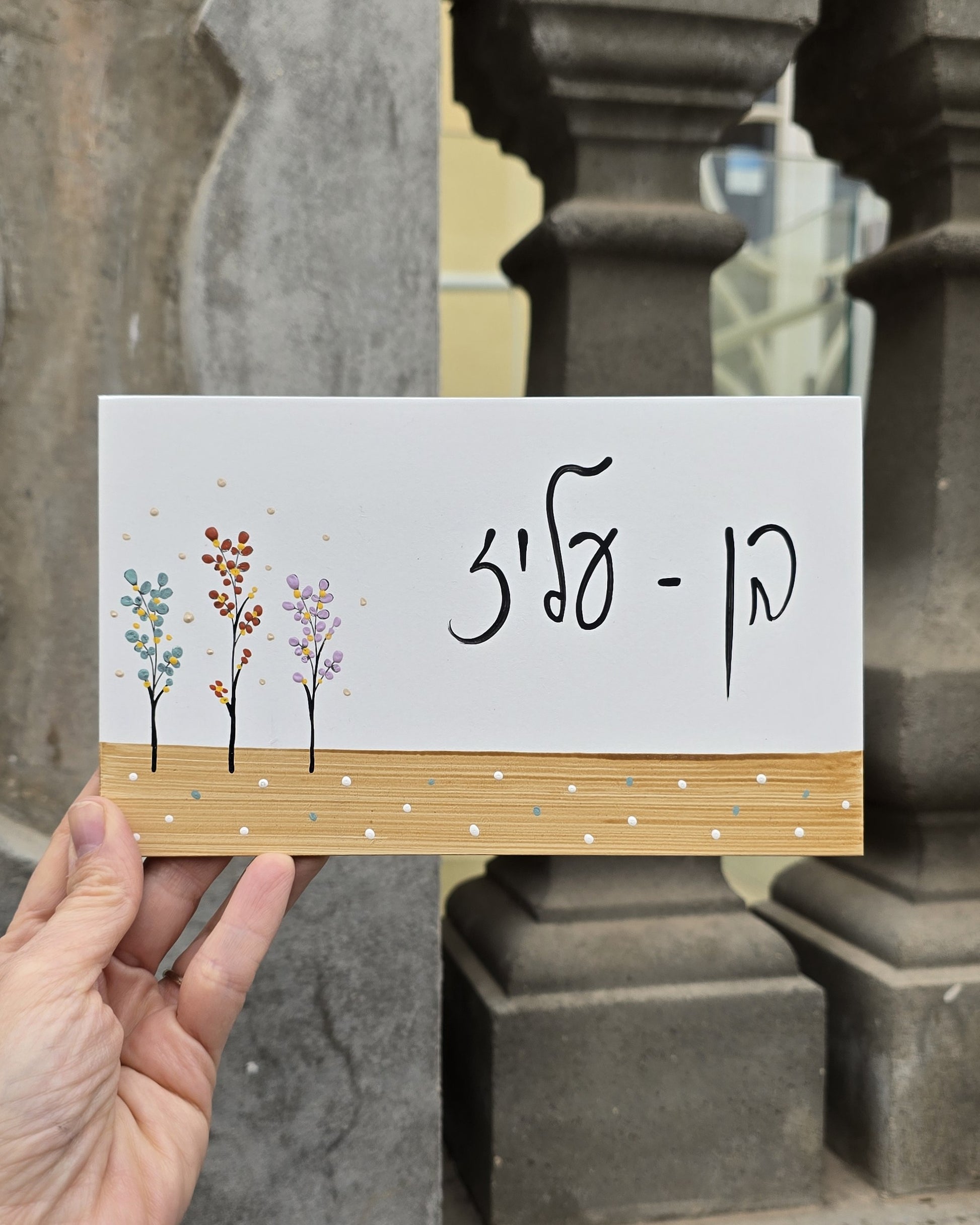כשתפתחו את האריזה ותעבירו יד על השלט, תרגישו את הטקסטורה ואת משיכות המכחול. כל שלט נוצר אצלי בסטודיו בעבודת יד מלאה אין הדפסות, אין ייצור המוני.