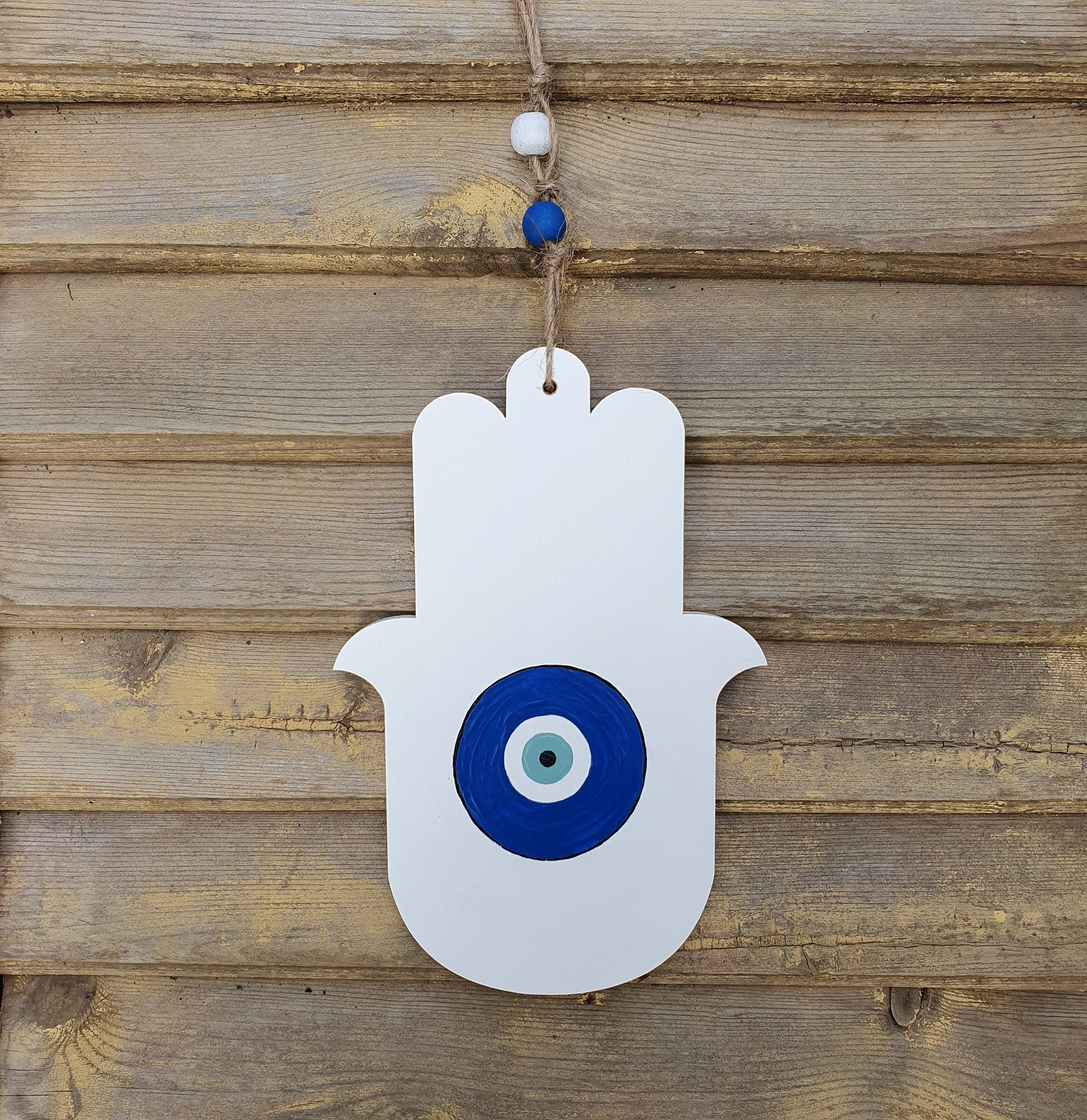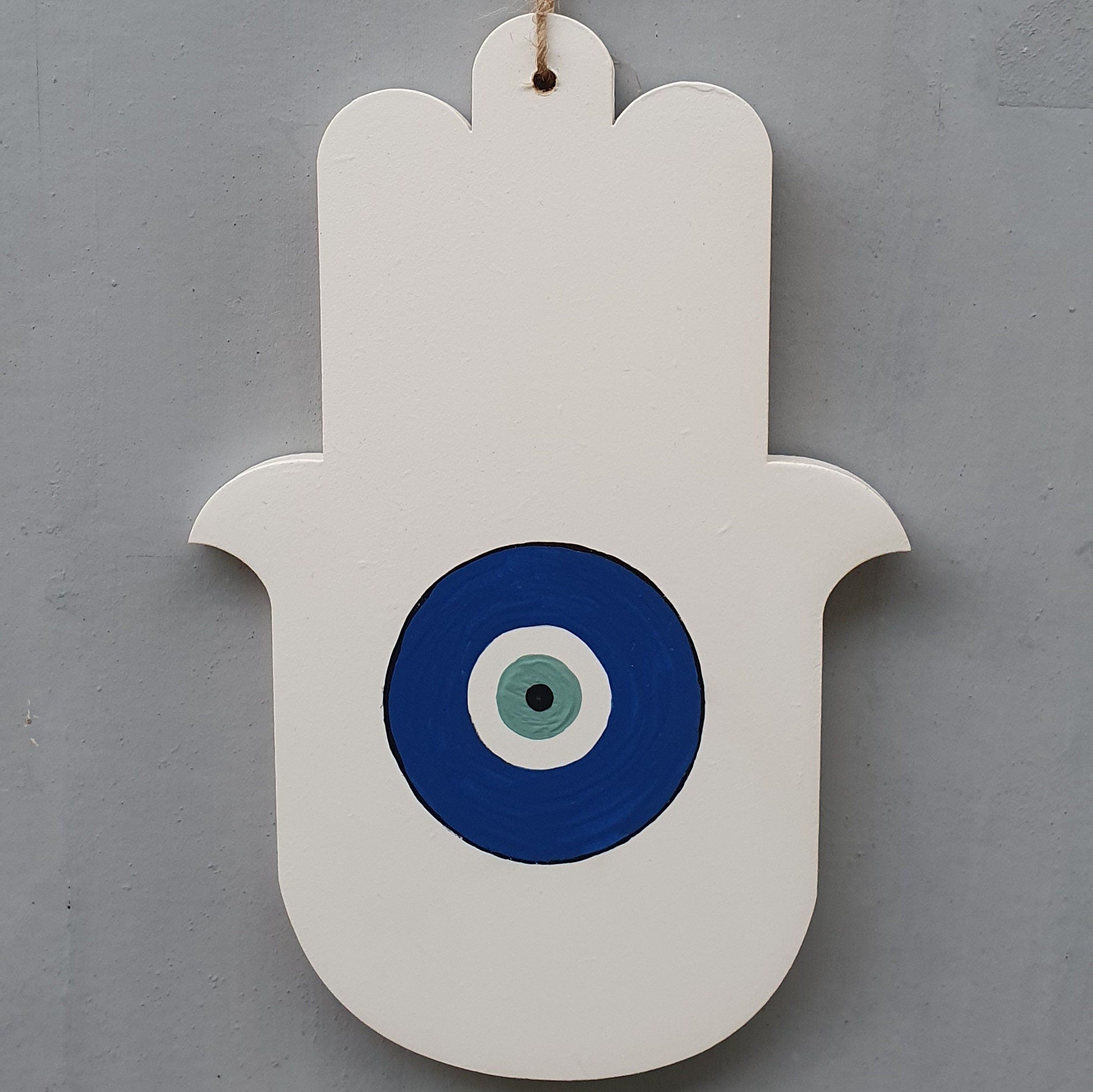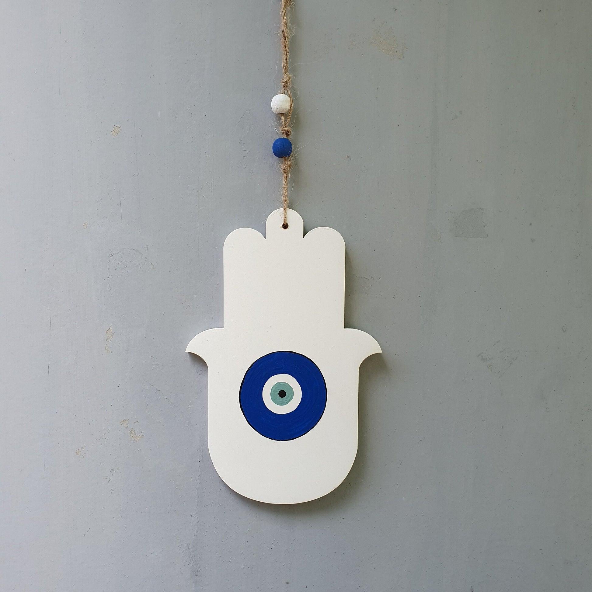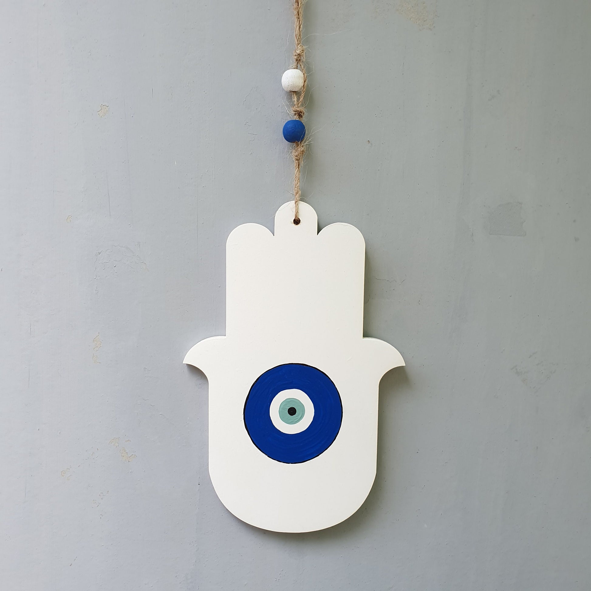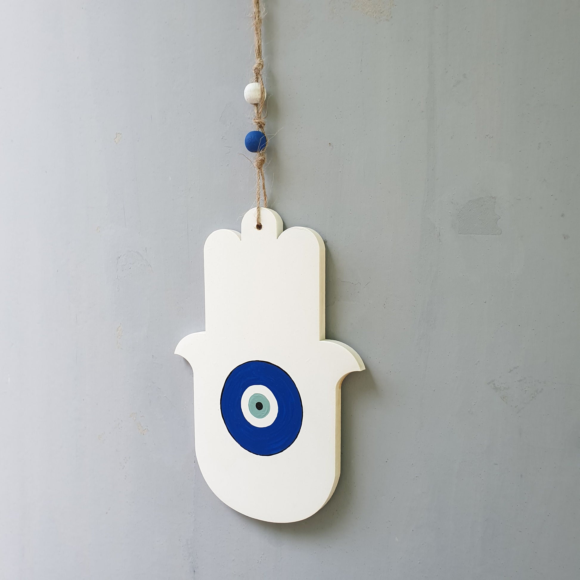 העין הכחולה במרכז יוצרת מוקד נקי ומאוזן שמוסיף אופי ועדינות לחלל ומתאימה במיוחד למי שאוהב עיצוב מינימליסטי עם נגיעה מסורתית.