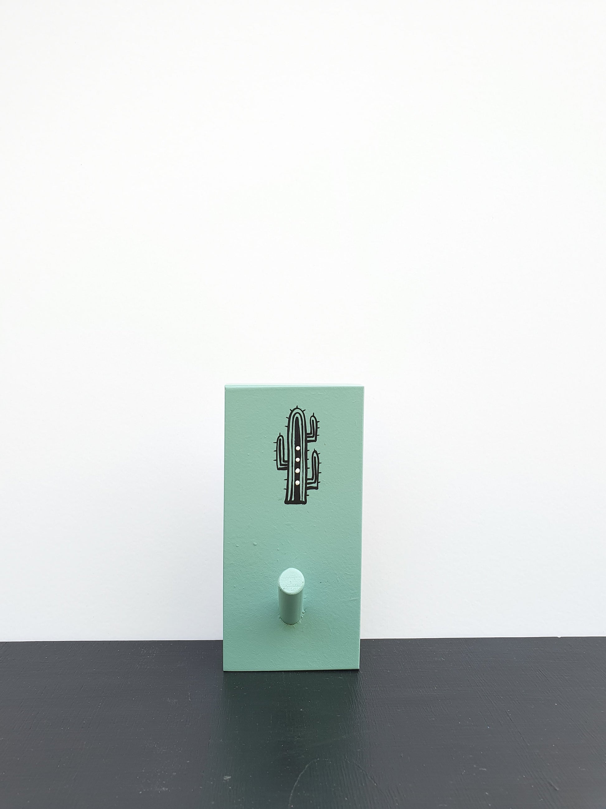 מתלה עץ עם וו תלייה קקטוס בעבודת יד.